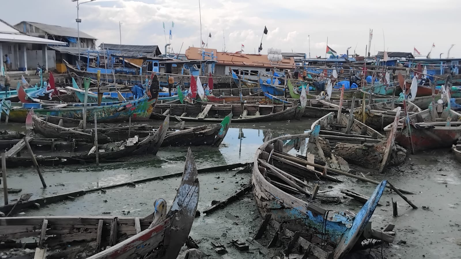 Pantauan di lapangan menunjukkan sejumlah perahu tak lagi digunakan dibiarkan menumpuk di area docking. Saat air laut surut, bangkai-bangkai tersebut tampak berserakan, menghalangi jalur perahu aktif yang hendak bersandar.