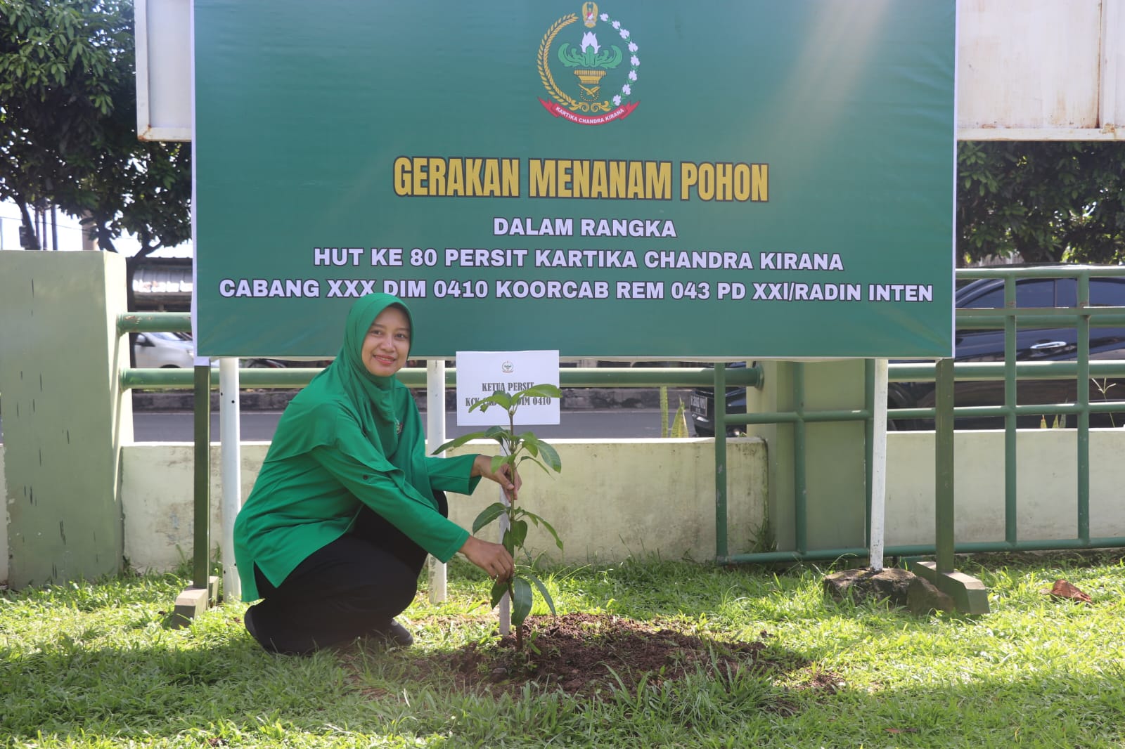 BANDAR LAMPUNG : Peringatan Hari Ulang Tahun (HUT) ke-80 Persit Kartika Chandra Kirana (KCK) diisi dengan aksi konkret menjaga kelestarian lingkungan. Persit KCK Cabang XXX Kodim 0410/KBL Koorcab Rem 043 PD XXI/Radin Inten menggelar gerakan penanaman ratusan pohon di Pos Ramil Kecamatan Kemiling, Kota Bandar Lampung, Kamis (16/4/2026).